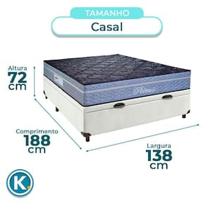 Suporta até 150kg, oferecendo alta durabilidade e firmeza para diferentes biotipos Base baú Casal com 42cm de altura e amplo espaço interno para organização