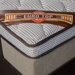 Caracteristicas: Molas ensacadas bitola 2mm, media 170 molas/m Espuma suporte D-33kg/m e nucleo macio D-40kg/m Tampo em tecido poliester com espuma Hiper Soft e base antiderrapante Suporta ate 130 kg