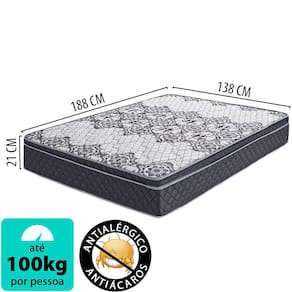 Medidas do Colchão: - Tamanho: Casal - Altura: 21 cm - Largura: 138 cm - Profundidade: 188 cm
