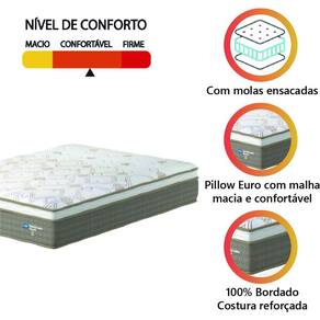 REVESTIMENTO INTERIOR: Molejo estrutural em molas ensacadas individualmente, que permitem que o colchão suporte até 110kg por pessoa, oferecendo conforto e estabilidade durante o sono.
