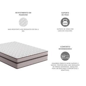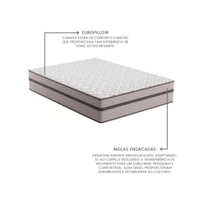 Colchão com Estrutura interna composta de molas ensacadas individualmente, Espuma poliuretano densidade 28kg/m3, EPS - Poliestireno Expandido, feltro resinado e TNT 100g. Faixa lateral e tampo no no tecido Sintel, fundo do produto TNT 100g. Cor da faixa lateral Bege, Tampo bege e fundo preto.