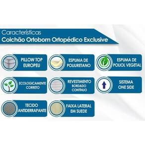 Vantagens Extras de Colchão - Ecologicamente Correto Tipo de Pillow - Pillow Top Europeu Tecido com Tratamento do Colchão - AntiÁcaro e AntiFungo Bordado do Revestimento do Colchão - Contínuo Forração Revestimento do Colchão - Fibras de Bambu Forração do Revestimento Inferior do Colchão - Antiderrapante Tecido de Revestimento da Faixa Lateral do Colchão - Suede Modo de Utilização do Colchão - One Side