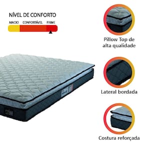 O Colchão de Casal Queen Millenium é uma combinação de beleza e conforto! Feito com materiais de alta qualidade, tecido Jacquard de toque macio e laterais em linho. Revestido com um tecido antiácaro e antifúngico, garantindo uma maior proteção e durabilidade, conta com Pillow Top, ou seja, uma camada extra de espuma que garante mais maciez. Ele suporta até 120 kg por pessoa. Ideal para os amantes de colchão de espuma!