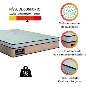 Você merece o melhor quando se trata do seu sono e bem-estar, e por isso o Colchão Maximus se torna a escolha perfeita para o seu quarto! Conta com molas ensacadas individualmente que trabalham em conjunto para garantir conforto e durabilidade, pois desta forma independente, o movimento de uma pessoa não interfere no conforto da outra. Confeccionado em malha matelassê e fibra siliconada que permite melhor ventilação, proporcionando ainda mais conforto, lateral em tecido suede de toque macio e ainda conta com uma camada de euro in, proporcionando maciez. Invista na qualidade do seu sono e experimente garantia total de descanso e qualidade de vida!