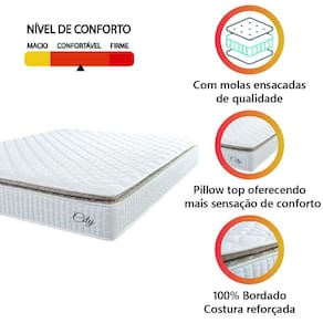 Descubra o extremo conforto do Colchão City, projetado para elevar a qualidade do seu sono proporcionando uma experiência única de descanso! Conta molas ensacadas de alta qualidade que trabalham em conjunto proporcionando resistência e aconchego na hora do descanso. Além de possuir pillow top que é uma camada extra de conforto proporciona uma experiência de sono inigualável. Invista na qualidade do seu sono e experimente garantia total de descanso e qualidade de vida! MEDIDAS: [ A ] = 23 cm [ L ] = 158 cm [ P ] = 198 cm PESO SUPORTADO: 110 kg por pessoa PESO: 27,98 kG MODELO: Colchão Casal Queen Molas Ensacadas City Pillow Top 158x198x23cm MARCA: Hellen COR: Branco / Bege REVESTIMENTO SUPERIOR E LATERAL: Tecido em poliéster Branco e Bege que permite melhor ventilação, proporcionando conforto e sensação agradável ao toque. REVESTIMENTO INTERIOR: Molejo estrutural em molas ensacadas individualmente, que permitem que o colchão suporte até 110kg por pessoa, oferecendo conforto e estabilidade durante o sono. REVESTIMENTO INFERIOR: Tecido antiderrapante PILLOW TOP: Sim, oferecendo ainda mais sensação de conforto ESPUMA: D20 POSSUI EPS: Sim ITENS INCLUSOS: 1 Colchão de 1,58m GARANTIA: 12 Meses pelo Fabricante A Esplanada Móveis se responsabiliza pela entrega dos produtos adquiridos até a porta de entrada ou portaria do endereço indicado, se a portaria do condomínio permitir, as entregas são efetuadas no piso térreo e é de responsabilidade do cliente a locomoção da mercadoria até seu apartamento ou casa. Confira as dimensões do produto e certifique-se de que estão adequadas aos elevadores, portas e corredores do local da entrega. Não fazemos a montagem, desmontagem do produto e/ou portas e janelas, transporte pela escada ou içamento pelo lado de fora do prédio. Não está incluso no serviço de entrega o deslocamento até o interior do apartamento, com ou sem elevador, ou deslocamento em locais de difícil acesso como escadarias.