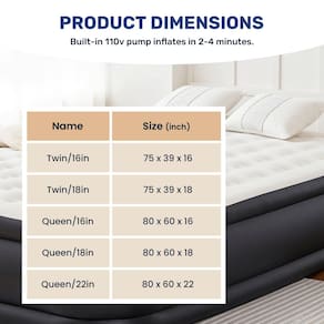 - Bomba de alta capacidade embutida: o colchão de ar é equipado com uma bomba de ar elétrica de alta potência de 110 V embutida de alta velocidade. A cama de ar pode ser inflada/esvaziada em minutos com o apertar de um botão em menos de 240 segundos para tamanho queen de 56 cm, perfeita para casa ou viagens