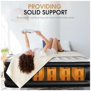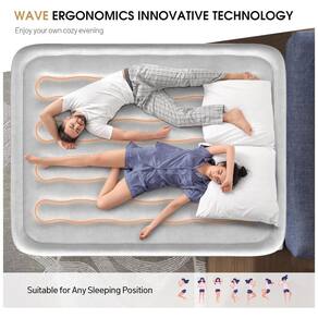 Desfrute de mais conforto e elegância com o Colchão de Ar DIVON Queen. Possui um elegante padrão de ondas e uma capa de camurça macia, proporcionando conforto superior. Com medidas de 203cm x 152cm x 46cm e características à prova d'água. Os lados do colchão inflável possuem reentrâncias perfeitas para manter lençóis ajustados, garantindo um sono tranquilo. Com suporte de feixe vertical resistente que distribui uniformemente o peso, reduzindo pontos de pressão. Suporta até 300kg, proporcionando noites de sono revigorantes. Construído com materiais antiderrapantes de alta resistência, oferece estabilidade aprimorada. Com construção em PVC 30% mais espesso, evitando esvaziamento durante a noite. Montagem fácil com bomba integrada, infla e desinfla em apenas 3 minutos. Acompanha bolsa para armazenamento, perfeito para quem valoriza praticidade. Versátil e ideal para uso doméstico, receber convidados, acampamentos ou presentear familiares e amigos.