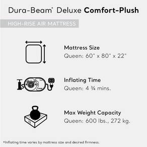 — CONFORTO: Com uma altura de cama de 22", este luxuoso e exclusivo sistema de bolsa de ar de dupla camada contorna seu corpo para maior conforto; com uma parte superior aveludada e laterais macias ao toque e resistentes a perfurações abrasões e escoriações; bolsa de transporte para viagem incluída. Amperagem: 0,65 A - Construção de borda exclusiva — Os colchões Dura-Beam Air são projetados com uma construção de borda exclusiva para suportar o peso do dorminhoco sem flacidez e é 100% mais durável, 35% mais resistente e 15% mais leve do que um colchão de ar tradicional -