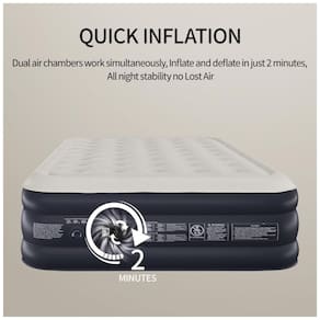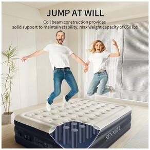 Desfrute de conforto e conveniência com o Colchão de Ar Queen SENNOUL, equipado com bomba integrada que infla e desinfla em apenas 2 minutos. Com estrutura de feixe de bobina interna, suporta até 295kg, garantindo estabilidade. O topo flocado em camadas múltiplas proporciona uma experiência de sono incrivelmente confortável e resistente à água, sem odores desagradáveis. Os materiais de PVC resistente a perfurações e antiderrapantes reforçam o colchão, mantendo sua forma e firmeza. Descanse tranquilo(a) em qualquer lugar, sem vazamentos.