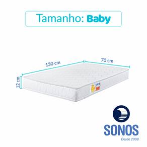 - Modelo: Home Baby - Dimensões: 70 x 130 x 12 cm (largura x comprimento x altura) - Espuma: D18 – Padrão ABNT - Revestimento: 100% poliéster - Estrutura: Dupla face - Suporte de peso: até 15 kg - Registro Inmetro: 004 779/2024 - Origem: Indústria Brasileira - Marca: Sonos