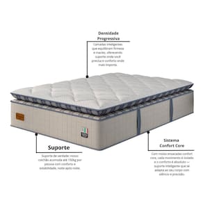 O Colchão Florence é a escolha perfeita para quem busca um descanso de qualidade e sofisticação. Com sua camada Pillow Top One Side de 15cm, ele proporciona uma sensação extra de maciez e aconchego, oferecendo o máximo de conforto ao se deitar e um suporte de ate 150 kg por pessoa. Sua estrutura de molas ensacadas garante suporte individualizado, adaptando-se ao corpo e proporcionando alívio de pressões, além de reduzir a transmissão de movimento.