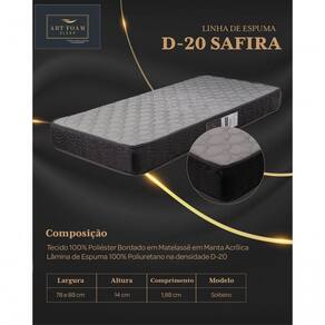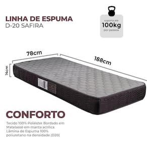 Colchão Solteiro Espuma D20 Safira 100% Espuma Ortopédica Diversos Tamanhos - ColchoMax