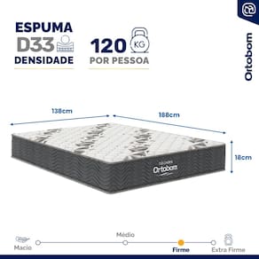 Buscando um colchão com conforto firme e suporte robusto? Nosso colchão de espuma D33 é ideal para quem precisa de um suporte consistente para o corpo. Com capacidade para suportar até 120 kg por pessoa, ele oferece a firmeza necessária para uma noite de sono reparadora, mantendo a coluna alinhada e reduzindo pontos de pressão.