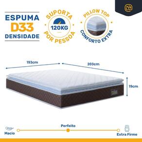 O pillow top adiciona uma camada plush ao colchão, ideal para quem precisa de um pouco mais de maciez sem comprometer o suporte ortopédico. Com capacidade para suportar até 120Kg por pessoa, este colchão é robusto e durável, garantindo que você desfrute de um investimento em descanso de longa duração. Cada detalhe é projetado para melhorar sua saúde e conforto noturno.