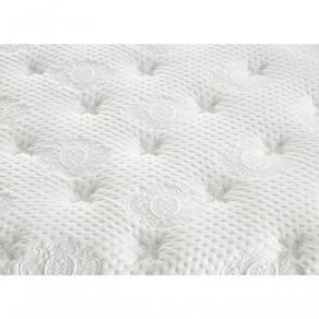 Tecido de malha 98% Poliéster e 2% Elastano, 460g/m2 em bordado matelassê de espuma convencional 26kg/m3 2cm, látex Gel 1cm, fibra e tecido não tecido.