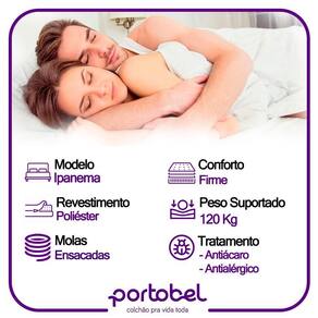 Colchão de Molas Ensacadas Casal Portobel Ipanema - 138x188x25cm