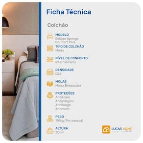 - Dimensões do produto (largura x comprimento x altura) 96x203x20cm.