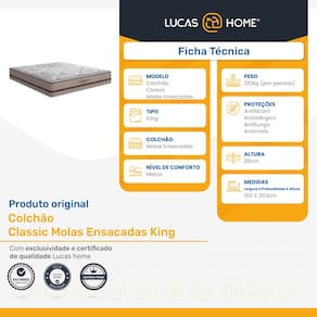 Sejam bem-vindos (as) a LUCAS HOME, o Colchão De Molas Ensacadas Classic Anjos é confeccionado em molas ensacadas de alta qualidade e conta com uma camada de espuma D26 assegurando toda a sustentação das molas ensacadas sem perder o conforto da espuma. Sua lateral é em linho e a parte superior bordada em matelassê. Possui tratamento actguard, anti ácaros, bactérias e fungos. Indicado para pessoas de até 120kg proporcionando conforto macio, o que lhe confere conforto extra durante o sono sem comprometer sua coluna. O Classic garante segurança por muito mais tempo pois possui a garantia Anjos de 2 anos.