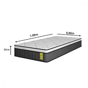 Características: - Espuma Ecofoam D26 + Camada de EPS - Euro Pillow - Mola ensacada - Não é dupla face -pode ser utilizado de apenas um lado- - Nível de conforto: Firme - Tecido do tampo: Malha com fios de bamboo - Tecido lateral: Poliester - Possui tratamento Antiácaro, Antialérgico e Antifungo - Suporte de peso: 160 kg - Garantia: 12 meses