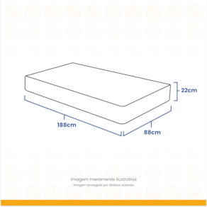 - Dimensões do produto (largura x comprimento x altura) 88x188x22cm;