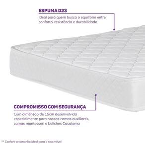 Desenvolvido com espuma D23 de alta qualidade, o colchão Nuvem oferece um conforto uniforme e um toque suave sem abrir mão da durabilidade com espuma de poliuretano. O colchão possui tecnologia Pillow Top Double side, super prática no dia a dia pois proporciona uma superfície aconchegante por igual e ainda aumenta a durabilidade do colchão, permitindo o uso em ambas as faces. Seu revestimento conta com tecido jacquard lassê. Caracterizado pela resistência e durabilidade. Pelo fato de ser um tecido leve, permite que o colchão transpire entre as camadas, proporcionando conforto ao usuário. A trama plana garante um visual limpo e uniforme ao tecido. Para garantir um toque suave ao produto as tampas possuem um bordado na superfície. Este colchão também é compatível para o uso com as camas, bicama, beliches e camas altas Casatema, que possuem tamanho compatível com o colchão de 88x188cm, se enquadrando nas normas de segurança de uso. Invista em um descanso com a qualidade, segurança a durabilidade que só CasaTema pode proporcionar. Ambiente Principal: Quarto Infantil Antiácaro: Não Antialérgico: Não Antifungo: Não Certificado: 3685/2024 Comprimento: 188 cm Cor: Branco Cor do Produto: Branco Densidade da Espuma: Espuma D-23 Informações Complementares: Suporte de peso individual: Até 1,70 e 40kg. Até 1,80m e 50kg. Acima de 1,80m e 60kg Itens Inclusos: 1 Colchão Solteiro e 1 Certificado de Garantia Linha ou Coleção: Nuvem Manual de Montagem e Instalação: https://cdn2.madeiramadeira.com.br/atributo/herval-colchoes-sp/2917019-3387-17468131453291.pdf Marca: Casatema Nível de Conforto: Macio Origem do Produto: Nacional Peso: 7 Pillow: Pillow Top Duplo Possui Certificado: Sim Possui Pillow: Sim Precisa virar: Sim Recomendações de Uso, Manutenção e Limpeza: Recomenda-se a utilização de um pano seco para limpeza. Revestimento: Poliéster Tamanho: Solteiro Tipo de espuma: Espuma Poliuretano Tipo de Tecido: Poliéster Tipo do Colchão: Espuma
