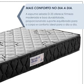 O Colchão de Espuma Solteiro SUBLIME D-33 foi desenvolvido para proporcionar um descanso superior, unindo firmeza, conforto e sofisticação. Com espuma selada D-33, garante excelente suporte e resistência, ideal para quem prefere um colchão mais firme sem abrir mão da comodidade. Seu tampo é confeccionado em malha bordada 100% poliéster de gramatura 180g/m², oferecendo um toque suave e agradável ao deitar, além de reforçar a aparência refinada do produto. A camada adicional de espuma D-20 no tampo colabora para maior conforto ao corpo. A faixa lateral em suede 190g/m² complementa o design com elegância e durabilidade. Com capacidade para até 160kg, o colchão também possui tratamento contra ácaros, mofos e fungos, promovendo um ambiente mais saudável para o sono. Ambiente Principal: Quarto Antiácaro: Sim Antialérgico: Sim Antifungo: Sim Certificado: Selo de Desempenho – Compulsório (INMETRO) codigo_ean: 7901056700131 Comprimento: 188 cm Cor: Preto fosco / Branco Cor do Produto: Preto Fosco / Branco Densidade da Espuma: Espuma D-28 Itens Inclusos: 1 Colchão Linha ou Coleção: Sublime Marca: América Colchões Nível de Conforto: Macio Origem do Produto: Nacional Peso: 10.7000 Pillow: EuroPillow Possui Certificado: Sim Possui Pillow: Sim Precisa virar: Não Recomendações de Uso, Manutenção e Limpeza: A limpeza deve ser feita com aspirador ou pano úmido com sabão neutro, sem encharcar. Mantenha em ambiente ventilado e longe do sol direto. Revestimento: Malha 100% Poliéster Tamanho: Solteiro Tipo de espuma: Espuma Soft Tipo do Colchão: Espuma Marca: Não Informado