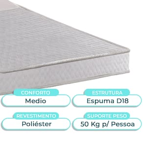 Colchão Casal com 17cm de altura, ideal para uso diário e confortávelRevestimento em poliéster resistente com toque suave e fácil de limparSuporte de até 80kg, indicado para crianças, adolescentes e adultos levesEspuma firme que proporciona bom apoio para o corpo durante o sonoPerfeito para camas auxiliares, beliches ou ambientes compactosOpção econômica com qualidade para quem busca praticidade e confortoFicha Técnica Colchão:Modelo: ConfortoMarca: ParopasTamanho: CasalTecido: PoliésterLargura: 138cmComprimento: 188cmAltura: 25cmSuporte de Peso: 80KgGarantia: 3 MesesAtenção:Antes da compra certifique-se de que o produto passa por elevadores, portas e corredores.As transportadoras não realizam entregas por escadas ou içamentos.Caso o item não caiba no elevador, a entrega será considerada concluída no térreo do prédio.A cor e tonalidade do produto pode variar de acordo com o dispositivo que o usuário está acessando.