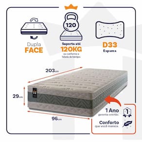 Medidas do Colchão: 88x188x28 cm, 96X203x28 cm, 138x188x28 cm, 158x198x28 cm, 193x203x28 cm.