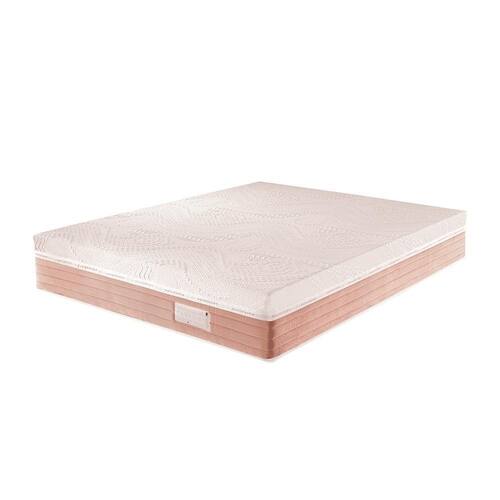 Colchão possui tampo em malha 100% Poliéster Gramatura 440g/m , 7 cm espuma convencional densidade 33kg/m , certificada, fabricação própria, camada isolante (feltro) colado sobre molas ensacadas individualmente de 15cm, poliestireno Expandido de 8cm, Espuma convencional Densidade 20kg/m de 2cm ao fundo tecido plano 100% Poliéster Gramatura 97g/m, e na sua lateral com tecido Veludo Rose 100% Poliéster com toque macio dando mais conforto.