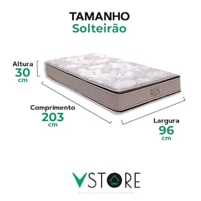 A tecnologia que a sua casa merece está na V-Store!Os colchões Four Seasons oferecem sustentação independente com molas ensacadas, garantindo uma posição correta durante o sono e eliminando a transferência de movimentos, perfeito para casais. O revestimento em malha 100% algodão combina resistência e conforto, enquanto os tratamentos antiácaro e antialérgico proporcionam mais saúde e qualidade de vida. Além disso, o pillow top adiciona uma camada extra de conforto, tornando suas noites ainda mais agradáveis. O sistema EPS também contribui para maior durabilidade e conforto térmico.Com 10 anos de garantia no molejo e 1 ano no estofamento (mediante avaliação técnica), você pode comprar com total tranquilidade e confiança.Transforme suas noites com os colchões Four Seasons Dupla Face – adquira já o seu!CARACTERÍSTICAS DO PRODUTOModelo: Four SeasonMarca: V-StoreTamanho: SolteirãoDimensões: 96x30x203 (Largura x Altura x Comprimento)Conforto: MédioSistema: Molas EnsacadasPillow: Pillow TopPeso Máximo recomendado: 150 kg (Por pessoa)Proteções: Antiácaro, antialérgico, antifungo, antimofoGarantia: 12 Meses (Espuma) / 10 anos ( Conjunto de Molas Ensacadas)