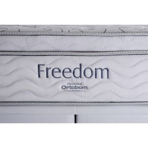 O Colchão Freedom Casal (138x188x32) - Mola Superpocket, Pillow Top com Espuma Viscoelástica - Ortobom tem sua estrutura composta por Molas Superpocket ensacadas individualmente, que fazem o peso de um corpo não interferir no conforto do outro.Possui manta de espuma Viscoelástica (desenvolvida pela NASA). Seu tecido é em malha hipersoft com elastano, oferecendo uma maior suavidade. O Freedom recebe um tratamento inovador, o Evo Care Vital, um composto de Óleo de Jojoba, Vitamina E e Aloe Vera, que protege a pele contra o envelhecimento precoce. Este tratamento funciona mesmo com a utilização do lençol, pois as fibras do colchão absorvem estes agentes. Possui tratamento contra proliferação de ácaros, bactérias e fungos. Devido a tecnologia No Turn, o Freedom não precisa ser virado.