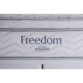 O Colchão Freedom Solteiro (88x188x32) - Mola Superpocket, Pillow Top com Espuma Viscoelástica - Ortobom tem sua estrutura composta por Molas Superpocket ensacadas individualmente, que fazem o peso de um corpo não interferir no conforto do outro.Possui manta de espuma Viscoelástica (desenvolvida pela NASA). Seu tecido é em malha hipersoft com elastano, oferecendo uma maior suavidade. O Freedom recebe um tratamento inovador, o Evo Care Vital, um composto de Óleo de Jojoba, Vitamina E e Aloe Vera, que protege a pele contra o envelhecimento precoce. Este tratamento funciona mesmo com a utilização do lençol, pois as fibras do colchão absorvem estes agentes. Possui tratamento contra proliferação de ácaros, bactérias e fungos. Devido a tecnologia No Turn, o Freedom não precisa ser virado.