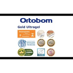 Gold Ultra Gel (158x198x32) SOBRE O PRODUTOGold Ultra Gel é o representante Super Premium dentre os produtos Ortobom. Sua estrutura é composta pelo molejo Superpocket (ensacadas individualmente) que fazem o peso de um corpo não interferir no conforto do outro. Possui em sua camada de conforto a inovadora espuma Viscogel D45, que é a espuma com a mais alta tecnóloga do mercado e que se adapta como nenhuma outra a temperatura e contornos do seu corpo. Possui Malha Belga Super Soft de alta qualidade no tampo, que proporciona conforto e uma beleza sem igual, sua lateral é confeccionada em Camurça 3D que apresenta um visual único ao produto. Recebe um tratamento inovador, o Evo Care Vital, um composto de Óleo de Jojoba, Vitamina E e Aloe Vera, que protege a pele contra o envelhecimento precoce. Este tratamento funciona mesmo com a utilização do lençol, pois as fibras do colchão absorvem estes agentes. Recebe tratamento antiácaro e antialérgico. Devido a tecnologia No Turn o Colchão Gold Ultra Gel não precisa ser virado. Sem duvidas neste produto encontrará o que há de mais moderno e melhor no mercado. CARACTERÍSTICAS Estrutura em molas Superpocket ensacadas individualmente e espuma D33 Pró Aditivada. Camada de conforto em espuma Viscogel D45. Tampo em Malha Belga Super Soft e lateral em Camurça 3D. Tratamento Evo Care Vital, antiácaros e antialérgico. Tecnologia No Turn.