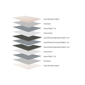 BENEFÍCIOS EXTERNOS DO COLCHÃO Tipo de Bordado do Tecido de Revestimento - Bordado Contínuo Tipo Tecido de Forração Revestimento - Jacquard em Malha Tipo de Tecido de Revestimento da Faixa Lateral - Maquinetado Tecido com Tratamento - AntiÁcaro e AntiFungo Modo de Utilização - Sistema Double Side