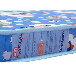 O Colchão Baby Physical possui tecido em Poliéster. Sua lateral e fitim com motivos infantis realçam o visual do produto, destacando-o no quarto do seu bebê, resultando em um design mais moderno e atrativo. A espuma selada 100% poliuretano oferece alta performance, apresentando excelente desempenho e presenteando o seu bebê com a sensação de aconchego. Espuma produzida com poliol à base de soja, ecologicamente correta, colaborando para a sustentabilidade do planeta.