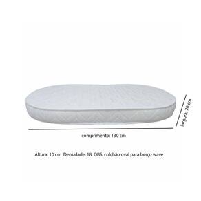 Suas dimensões são: 129,4 x 69,4 x 10 cm com as pontas arredondadas Densidade: 18 Marca: Ortobom Abertura para Ventilação: Não Ambiente Principal: Quarto de Bebê Antiácaro: Não Antialérgico: Não Antifungo: Não Cor: Branco Cor do Produto: Branco Ideal para: Berço Itens Inclusos: 01 Colchão Linha ou Coleção: Wave Necessita Montagem: Não Origem do Produto: Nacional Peso: 2 Pillow: Não possui Precisa virar: Não Recomendações de Uso, Manutenção e Limpeza: Pano macio levemente umedecido e na sequência pano macio seco. Revestimento: Poliéster Tamanho: Infantil Tipo de espuma: Espuma Látex Tipo do Colchão: Espuma