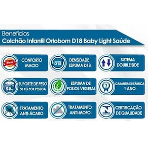 BENEFÍCIOS GERAIS DO COLCHÃO Certificados de Qualidade - Qualidade Aprovada - INMETRO Vantagens Extras do colchão de berço - Ecologicamente Correto Nossa Avaliação - Qualidade Excelente Tempo de Garantia - 12 meses