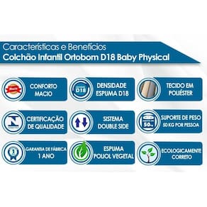 Tipo de Espuma do Colchão - Espuma de Poliol Vegetal Densidade da Espuma do Colchão - D18 Nível de Firmeza do Colchão - Macio Peso Máximo Suportado do Colchão - 50 kg