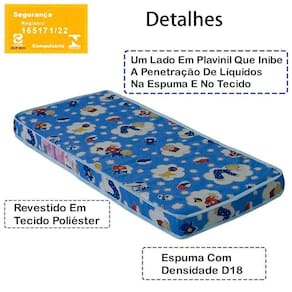Colchao Infantil Para Berço 60X130 Cm BB863 certificado pelo INMETRO n 165171/22, traz o melhor em conforto, segurança e beleza, possui a qualidade que você procurava para sono do seu bebê. Produzido em espuma 100% poliuretano com densidade D18, o que significa que ele é macio e os pequenos vão ter ótimas noites de sono. Tecido lateral tem um dos tampos em Poliéster e o outro tampo do colchão é em Plavinil que inibe a penetração de líquidos na espuma aumentando assim a vida útil do produto. Possui tratamento de higienização que impede a formação e colonização de ácaros, fungos e bactérias. Este produto chegará em sua casa separado em 01 volume.