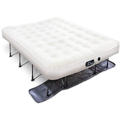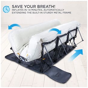 A bomba embutida EZBed infla e desinfla automaticamente o colchão de ar em menos de 4 minutos, a bomba possui opções de desligamento automático Pelúcia, Médio, Firme para atingir o nível de conforto desejado com facilidade. O design da estrutura autodesdobrável permite que o usuário simplesmente descompacte o estojo, conecte o à parede, ligue o e vá embora para facilitar a configuração. Colchão flocado durável com 48 bobinas circulares fornece uma superfície de sono macia e confortável que também mantém seus lençóis no lugar Marca: Não Informado