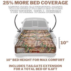 Projetado para caber ao redor e sobre as cavidades das rodas de sua picape, criando uma área de descanso que utiliza toda a carroceria do caminhão. Bomba de ar de bateria recarregável embutida para inflar e desinflar rapidamente seu colchão. Um sistema de bobina de ar integrado distribui uniformemente o peso pelo colchão, proporcionando uma melhor noite de sono. Apresenta camuflagem Realtree licenciada Marca: Não Informado