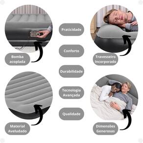Colchão Inflável Casal Queen Premium Tritech Com Bomba Elétrica Bestway Voltagem: Bivolt Colchão Inflável Casal Queen Tritech Bestway O Colchão Inflável Casal Queen Tritech da Bestway é a escolha ideal para quem busca conforto, praticidade e durabilidade em um colchão inflável. Com tecnologia avançada e materiais de alta qualidade, este colchão oferece uma experiência de sono superior transformando sua experiência de dormir em puro luxo, seja para uso em casa, em viagens ou para acomodar convidados. Características Principais: Tecnologia Tritech tm : Desenvolvido com a exclusiva tecnologia Tritech tm , que utiliza três camadas de PVC, poliéster e vinil, o colchão oferece maior resistência, estabilidade e durabilidade, evitando deformações ao longo do tempo. Mantém a firmeza e o conforto mesmo após várias noites de uso, proporcionando suporte adequado para o corpo e o travesseiro incorporado proporciona apoio extra para sua cabeça e pescoço. Tamanho Queen: Com dimensões generosas de 203cm de comprimento, 152cm de largura e 36cm de altura, o colchão oferece espaço suficiente para acomodar confortavelmente duas pessoas. Perfeito para garantir uma boa noite de sono, seja em casa ou ao ar livre. Bomba de Ar Integrada: Equipado com uma bomba de ar elétrica embutida que infla e desinfla o colchão rapidamente em apenas alguns minutos. Simples de usar, basta conectar à tomada e ligar a bomba para preparar o colchão sem esforço. Superfície Aveludada: A superfície superior do colchão é revestida com um material aveludado, que oferece uma sensação suave ao toque e ajuda a manter a roupa de cama no lugar durante a noite. Proporciona uma experiência de sono ainda mais confortável e aconchegante. Design Compacto e Portátil: Após desinflado, o colchão pode ser facilmente dobrado e armazenado, ocupando pouco espaço. Especificações Técnicas: Dimensões: 203cm C x 152cm L x 36cm A Material: PVC Tritech tm com revestimento aveludado Capacidade de Peso: Suporta até 300 kg Bomba de Ar: Integrada, com funcionamento elétrico Tempo de Inflagem: Aproximadamente 4 minutos Peso: Aproximadamente 6,200kg desinflado Benefícios Adicionais: Durabilidade Superior: A tecnologia Tritech tm garante que o colchão mantenha sua forma e firmeza, resistindo ao uso prolongado e às variações de temperatura. Facilidade de Uso: A bomba elétrica embutida torna o processo de inflar e desinflar o colchão rápido e sem complicações. Versatilidade: Ideal para uso em casa, em viagens, em acampamentos ou para receber visitas inesperadas com conforto. O Colchão Inflável Casal Queen Tritech da Bestway combina praticidade, conforto e durabilidade em um só produto. Seja para uso ocasional ou frequente, ele oferece uma solução confortável e confiável para suas noites de sono, onde quer que você esteja. Conteúdo da embalagem: 1 Colchão Inflável Casal e Kit de reparo. 1. Qual é a capacidade de peso do Colchão Inflável Casal Queen Tritech O colchão suporta até 300 kg, garantindo conforto e segurança para duas pessoas. 2. O colchão vem com uma bomba de ar sim, o colchão possui uma bomba de ar elétrica integrada, que facilita o processo de inflar e desinflar. 3. Posso usar o colchão em ambientes externos sim, o colchão é versátil e pode ser utilizado tanto em ambientes internos quanto externos, como em acampamentos. No entanto, é importante protegê-lo de superfícies pontiagudas e condições climáticas extremas. 4. O colchão perde ar durante a noite graças à tecnologia Tritech tm , o colchão é projetado para minimizar a perda de ar. No entanto, uma ligeira perda pode ocorrer, especialmente com variações de temperatura, mas isso é normal para colchões infláveis.