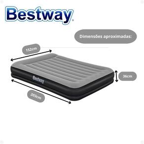 Colchão Inflável Casal Queen Premium Tritech Com Bomba Elétrica Bestway Voltagem: Bivolt Colchão Inflável Casal Queen Tritech Bestway O Colchão Inflável Casal Queen Tritech da Bestway é a escolha ideal para quem busca conforto, praticidade e durabilidade em um colchão inflável. Com tecnologia avançada e materiais de alta qualidade, este colchão oferece uma experiência de sono superior transformando sua experiência de dormir em puro luxo, seja para uso em casa, em viagens ou para acomodar convidados. Características Principais: Tecnologia Tritech tm : Desenvolvido com a exclusiva tecnologia Tritech tm , que utiliza três camadas de PVC, poliéster e vinil, o colchão oferece maior resistência, estabilidade e durabilidade, evitando deformações ao longo do tempo. Mantém a firmeza e o conforto mesmo após várias noites de uso, proporcionando suporte adequado para o corpo e o travesseiro incorporado proporciona apoio extra para sua cabeça e pescoço. Tamanho Queen: Com dimensões generosas de 203cm de comprimento, 152cm de largura e 36cm de altura, o colchão oferece espaço suficiente para acomodar confortavelmente duas pessoas. Perfeito para garantir uma boa noite de sono, seja em casa ou ao ar livre. Bomba de Ar Integrada: Equipado com uma bomba de ar elétrica embutida que infla e desinfla o colchão rapidamente em apenas alguns minutos. Simples de usar, basta conectar à tomada e ligar a bomba para preparar o colchão sem esforço. Superfície Aveludada: A superfície superior do colchão é revestida com um material aveludado, que oferece uma sensação suave ao toque e ajuda a manter a roupa de cama no lugar durante a noite. Proporciona uma experiência de sono ainda mais confortável e aconchegante. Design Compacto e Portátil: Após desinflado, o colchão pode ser facilmente dobrado e armazenado, ocupando pouco espaço. Especificações Técnicas: Dimensões: 203cm C x 152cm L x 36cm A Material: PVC Tritech tm com revestimento aveludado Capacidade de Peso: Suporta até 300 kg Bomba de Ar: Integrada, com funcionamento elétrico Tempo de Inflagem: Aproximadamente 4 minutos Peso: Aproximadamente 6,200kg desinflado Benefícios Adicionais: Durabilidade Superior: A tecnologia Tritech tm garante que o colchão mantenha sua forma e firmeza, resistindo ao uso prolongado e às variações de temperatura. Facilidade de Uso: A bomba elétrica embutida torna o processo de inflar e desinflar o colchão rápido e sem complicações. Versatilidade: Ideal para uso em casa, em viagens, em acampamentos ou para receber visitas inesperadas com conforto. O Colchão Inflável Casal Queen Tritech da Bestway combina praticidade, conforto e durabilidade em um só produto. Seja para uso ocasional ou frequente, ele oferece uma solução confortável e confiável para suas noites de sono, onde quer que você esteja. Conteúdo da embalagem: 1 Colchão Inflável Casal e Kit de reparo. 1. Qual é a capacidade de peso do Colchão Inflável Casal Queen Tritech O colchão suporta até 300 kg, garantindo conforto e segurança para duas pessoas. 2. O colchão vem com uma bomba de ar sim, o colchão possui uma bomba de ar elétrica integrada, que facilita o processo de inflar e desinflar. 3. Posso usar o colchão em ambientes externos sim, o colchão é versátil e pode ser utilizado tanto em ambientes internos quanto externos, como em acampamentos. No entanto, é importante protegê-lo de superfícies pontiagudas e condições climáticas extremas. 4. O colchão perde ar durante a noite graças à tecnologia Tritech tm , o colchão é projetado para minimizar a perda de ar. No entanto, uma ligeira perda pode ocorrer, especialmente com variações de temperatura, mas isso é normal para colchões infláveis.