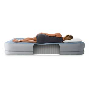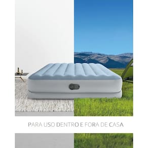 A bomba de ar embutida permite inflar e desinflar o colchão de forma rápida e sem esforço, eliminando a necessidade de bombas manuais ou elétricas externas. Com acabamento em cor cinza moderna e discreta, ele combina facilmente com qualquer ambiente.
