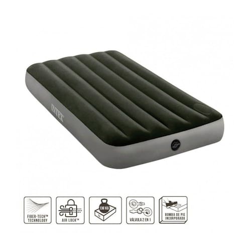Características: ? Colchão inflável de solteiro Intex Peso suportado: 136 Kg aproximadamente Peso: 3 kg Válvula para rápido esvaziamento Válvula de ar de segurança (dosadora) Material PVC Fácil de usar Uso Prático Possui bomba de pé embutida Material interno em fiber tech para maior conforto, estabilidade e firmeza Design moderno Vinil super resistente Possui superficie confortável Dimensões: 1,91m x 76 cm x 25 cm