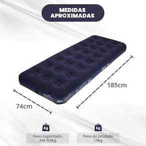 Colchão Inflável Solteiro Nautika 185cm x 74cm x 23cm 1,6kg Azul-marinho Suporta 150kg