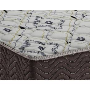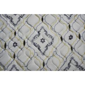 Estrutura em placa EPS e camada de conforto em espuma D45 Pró Aditivada de Alta Performance. Tecido em Viscopoli, bordado em matelassê, tratamento antialérgico e antiácaro.