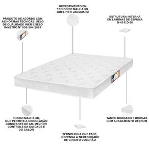 Por ser um colchão one face, você não precisa girar, basta fazer o rodízio da cabeceira para os pés e vice-versa, prolongando a durabilidade e adaptando-se às suas necessidades. Além disso, estrutura interna, feita com lâminas de espuma D45 proporciona um suporte ideal, enquanto a faixa lateral com tecnologia Aria 3D garante uma ventilação constante, criando um ambiente fresco e aconchegante. E o acabamento? Um verdadeiro espetáculo! Com bordado contínuo e debrum que reforçam as bordas laterais, o colchão casal king exala elegância e estilo, elevando a decoração do seu quarto a um patamar.