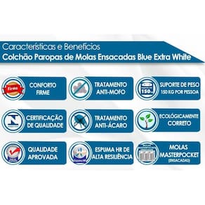 Colchão King Molas Ensacadas Blue Extra White (193x203x32) - Paropas