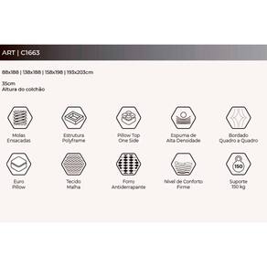Dimensões(Cm): Comprimento(Profundidade): 203cm x Largura: 193cm x Altura: 35cm Tipo de Colchão - Molas Vantagens Extras de Colchão - Ecologicamente Correto - c/ Sistema Polyframe Tipo de Pillow - Pillow Top Europeu Tecido com Tratamento - AntiÁcaro e AntiFungo Tipo de Bordado do Tecido de Revestimento - Localizado Tipo Tecido de Forração Revestimento - Malha de Alta Qualidade - Malha 3D - Malha Belga Tipo de Forração do Revestimento Inferior - Antiderrapante Tipo de Tecido de Revestimento da Faixa Lateral - Linho Cor do Tecido de Revestimento da Faixa Lateral - Clara Cor do Tecido do Tampo - Branco Modo de Utilização - One Side Camadas Interna do Estofamento de Espuma - Alta Qualidade Tipo de Espuma - Espuma de Poliuretano de Alta Qualidade Tipo de Mola - Ensacadas MasterPocket Nível de Firmeza do Colchão - Firme Peso Máximo Suportado - 150 kg Certificação de Qualidade - Qualidade Aprovada - INMETRO - ISO 9001 Nossa Avaliação - Qualidade Muito Boa Tempo de Garantia - 3 meses - 12 meses